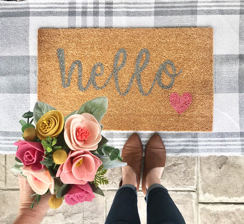 We all know when welcoming people to our homes we want to make a good impression. Even if we are not having people visit, it’s nice to give our entry way some curb appeal. It doesn’t take much, but a few details will make it beautiful. I love adding a wreath, cute door mat and some potted plants.