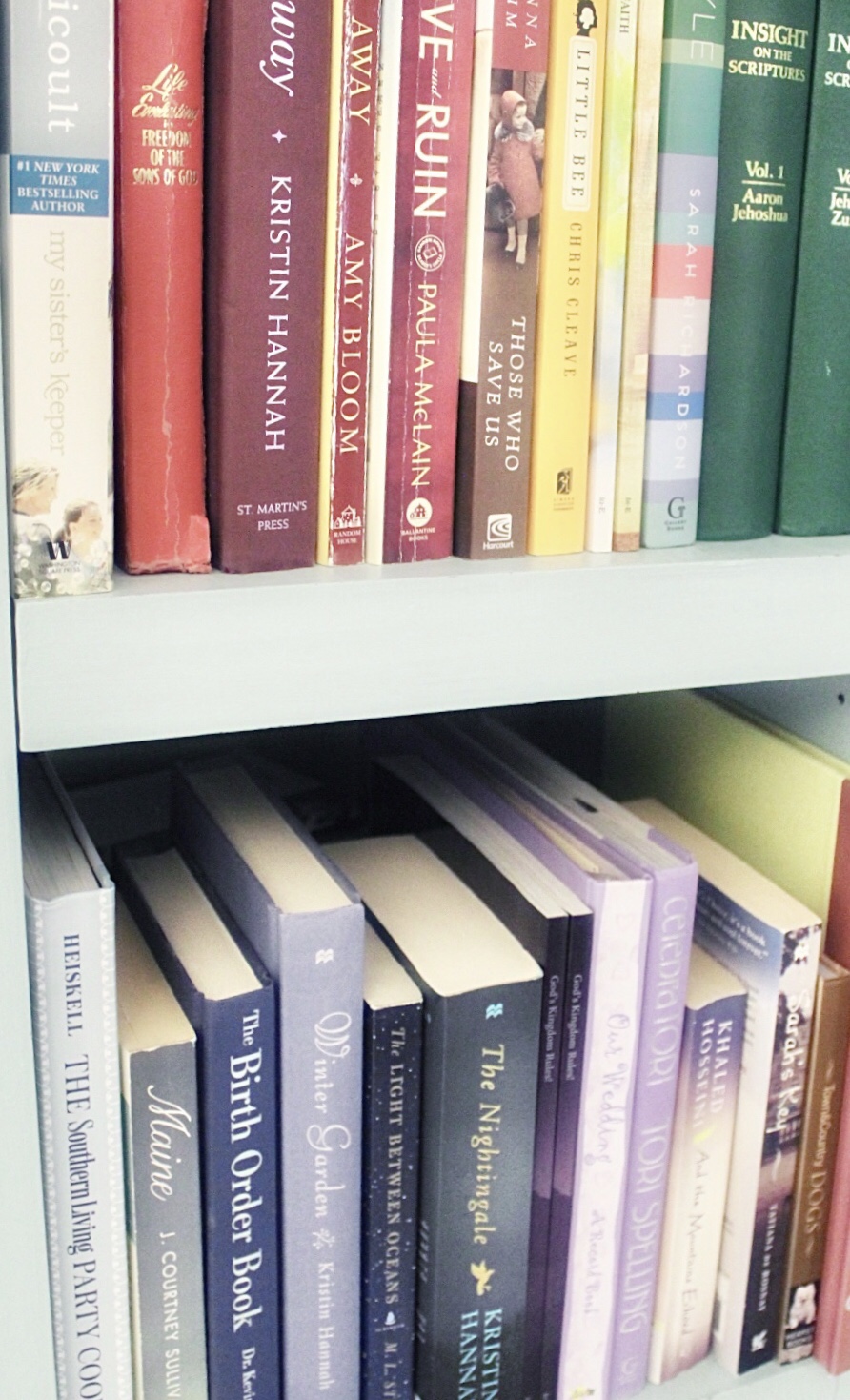 Lastly, I had a bookshelf with random books scattered with no organization. I then saw the idea on Pinterest to organize your books by color and loved it! Rainbowtized books? Yes, please!