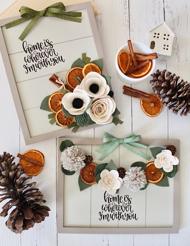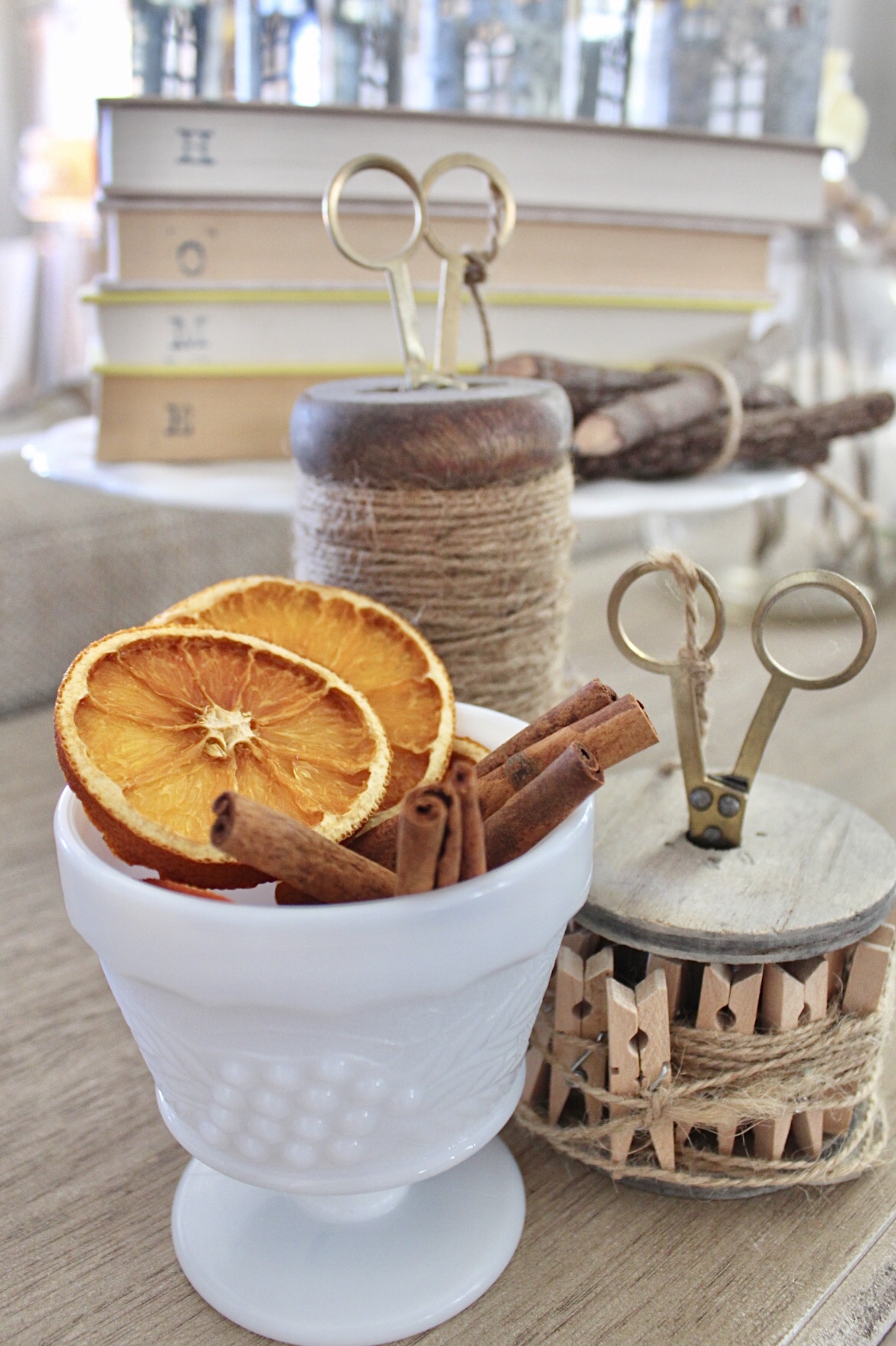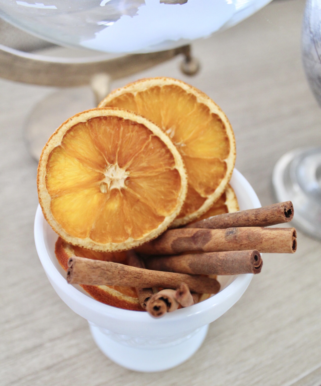 I love the look of dried oranges for fall and winter decorating. I had decided I would add some to a few signs I was going to make for my Etsy shop. They were so easy to do! I think I also want to make a garland for my mantle now!