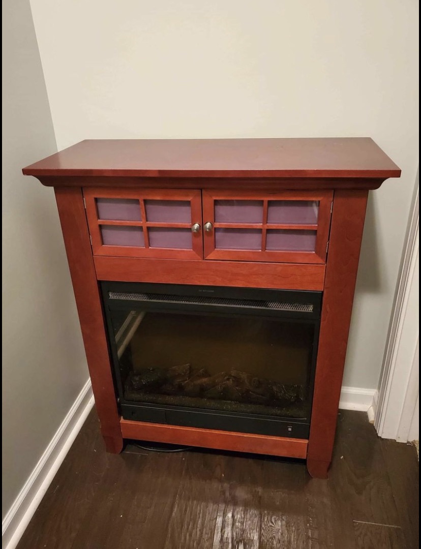 So, the She Shed is really coming together! I have some projects already planned for the inside! I bought a chandelier that I am excited about. I also bought an electric fireplace on Facebook Marketplace that I will paint and makeover. Then I found the cutest mirror at Goodwill for above the fireplace!