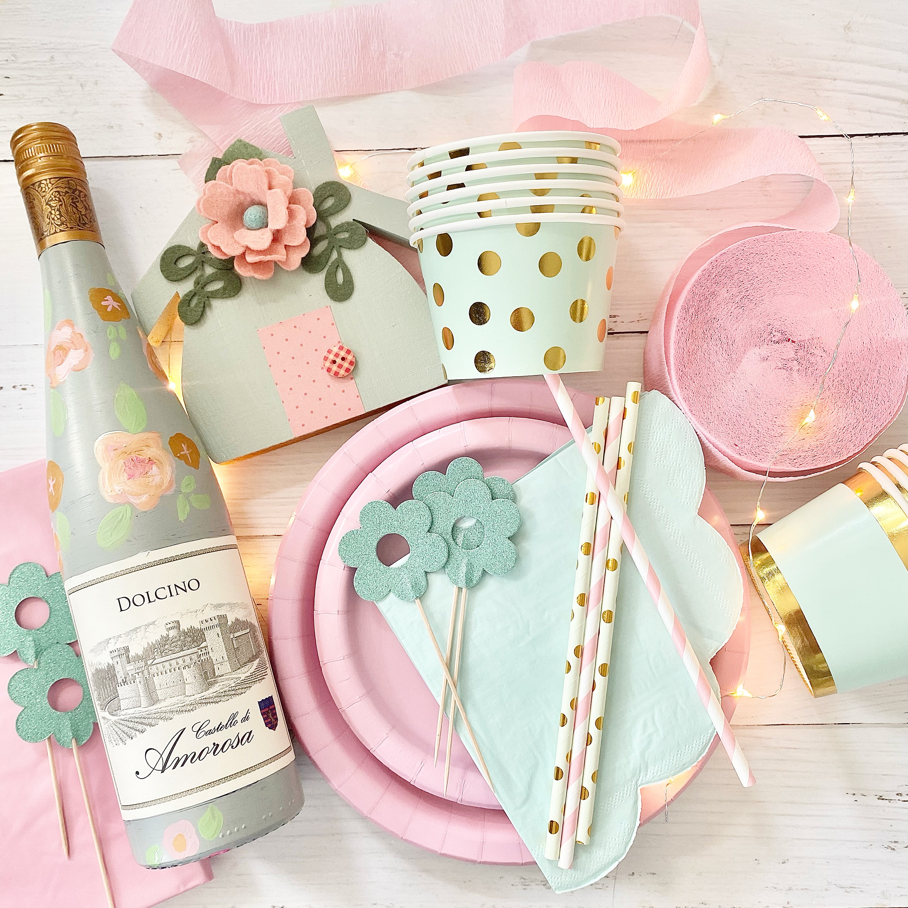 I love party planning so I started a Pinterest board of ideas. I wanted my theme to match the colors of my shed so I began collecting some supplies.