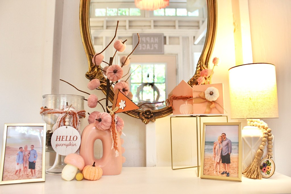 I love the soft colors for Fall and am so excited to warm up some apple cider and turn on my fireplace in here once the temps cool down! Stay tuned as I add more and decorate the outside, too!