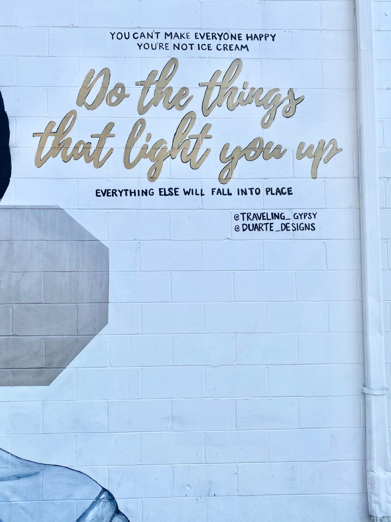 If you want to grab a coffee or a glass of wine head to Rosie’s Wine Garden and make sure to check out the mural they have with a beautiful message!