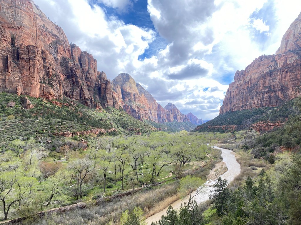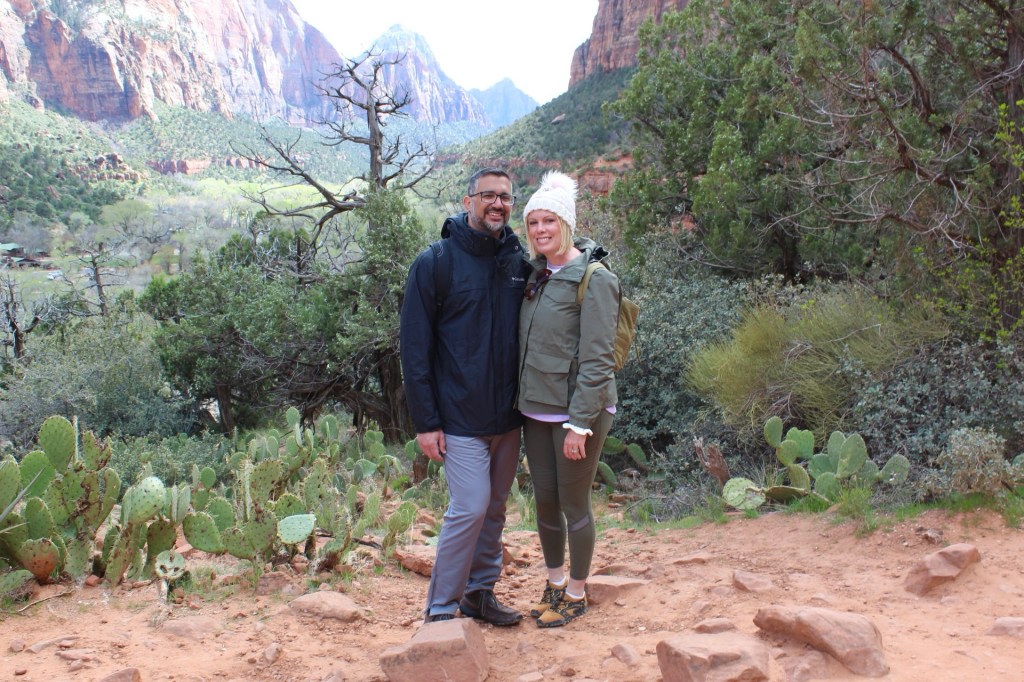 Next we went back to Zion. What a different experience it was! I’m not sure if because it was cooler and had more wind but the crowds were much less. We found parking quickly and the shuttle was only about fifteen minutes! We went to Emerald Pools Trail. It was such a gorgeous hike!
