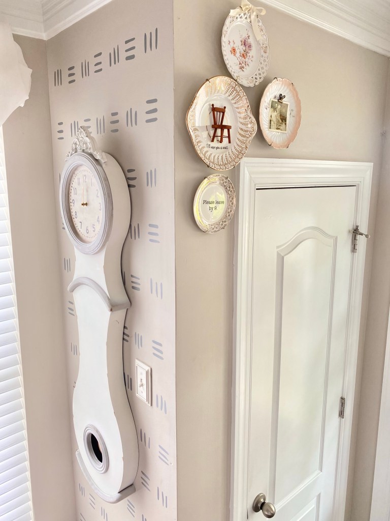 Now that they were finished I had to decide where to hang them. I opted for a spot around the hall closet. Fortunately the plates also came with hangers so I just I had choose a layout!