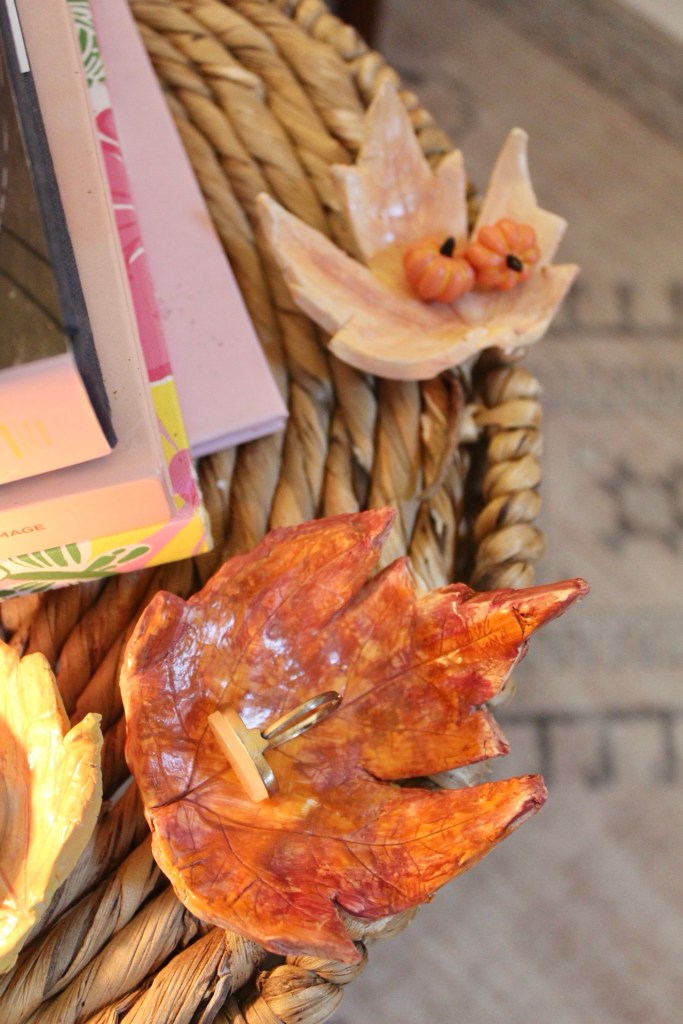 I love a good Fall craft! I have a Fall Crafternoon planned for a few little girls coming up this weekend and I thought it would be fun to make little trinket trays for them to take home. So, I figured I would use some air dry clay and get a little creative and make a leaf version.