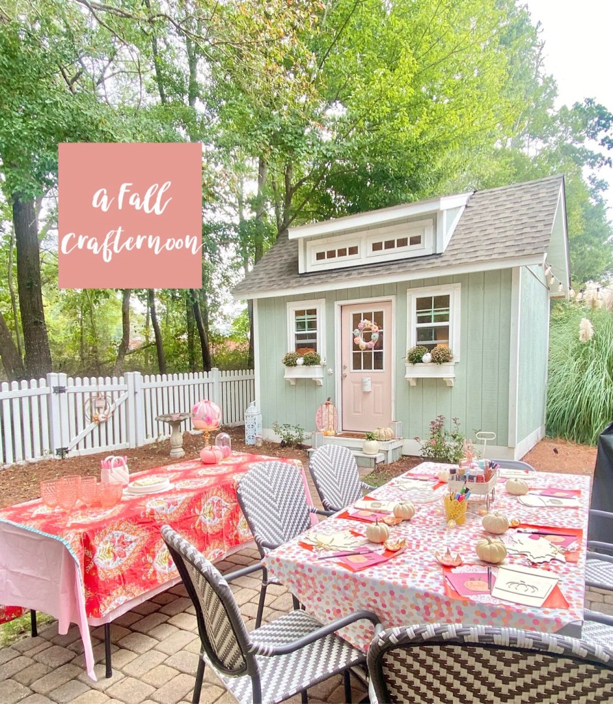 My she shed is always the perfect backdrop and my inspiration for backyard parties. I had thrifted a few tablecloths before and worked with what I had.