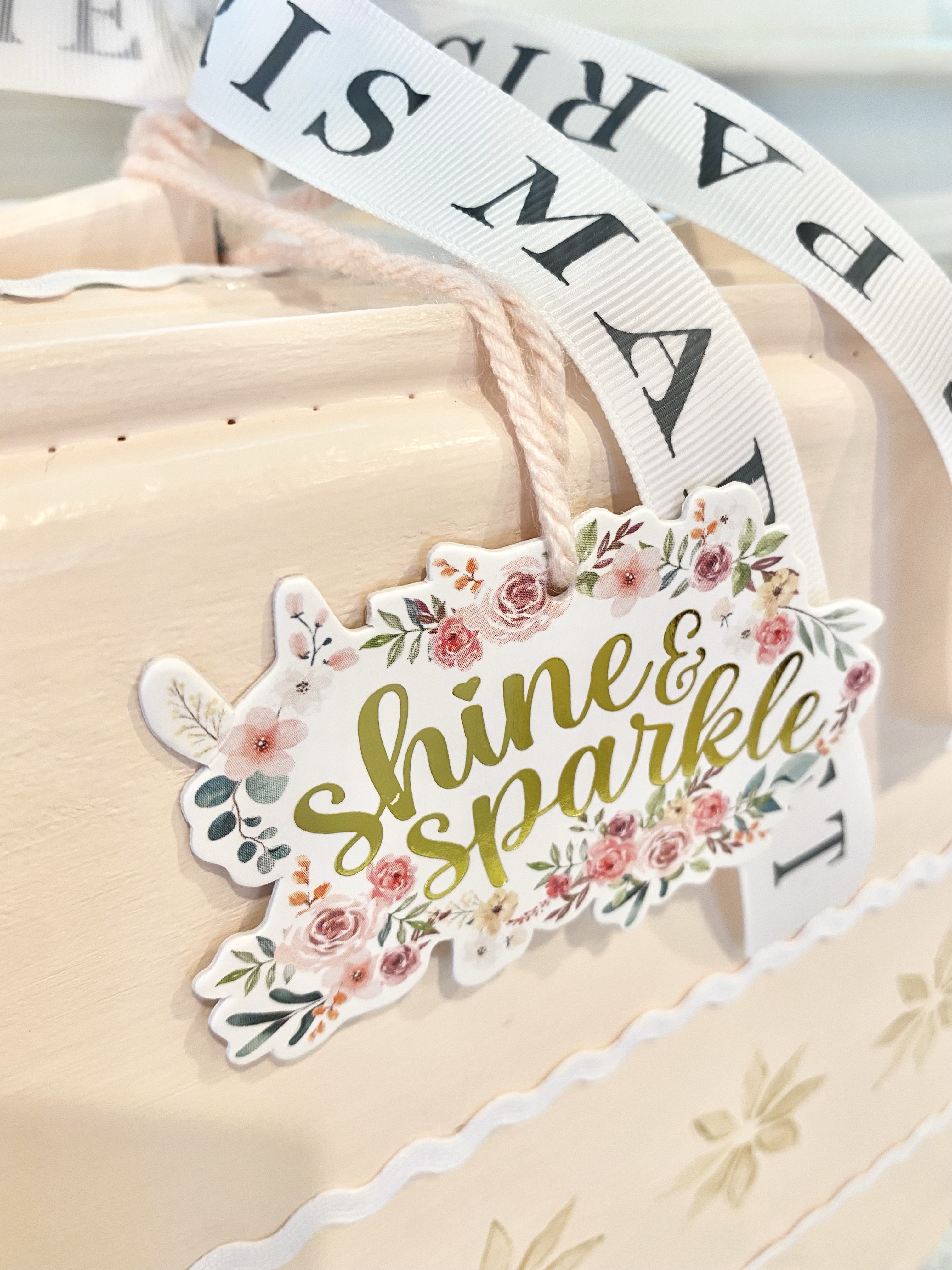 Once inside I added things I had. As you can see I have a pumpkin addiction! I added them in white, pinks and coral. The pink velvet pumpkins were from Hobby Lobby last year. The pumpkin pie pennant is from Michael’s.