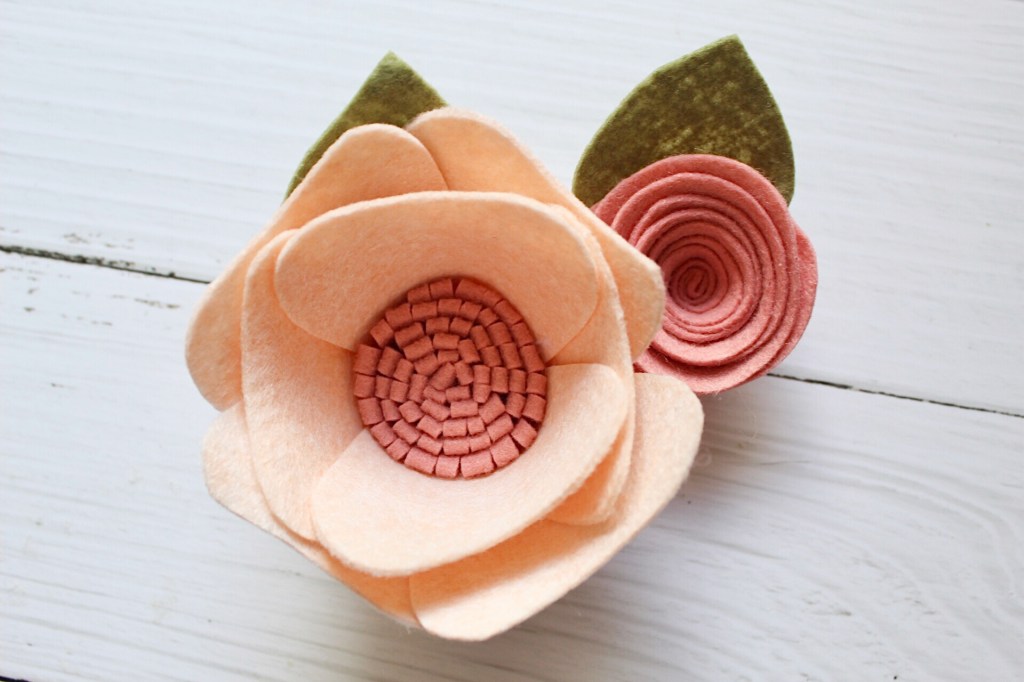 There are many different style of felt flowers. After years of practice I still have lots to learn. There are also many methods and ways of making felt florals. Some I make on a die cutting machine, but many are hand cut.