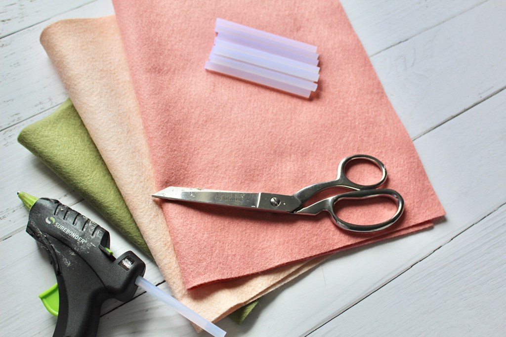 The other supplies you will need are sharp scissors, a hot glue gun and glue sticks.