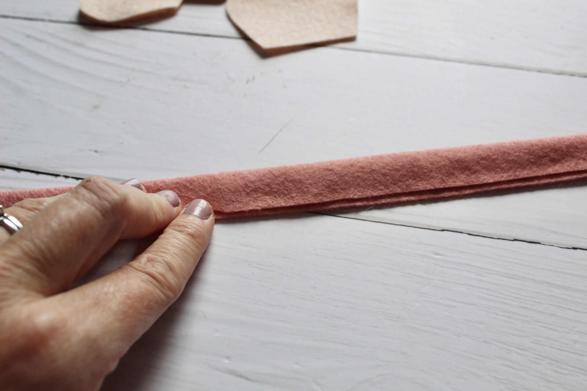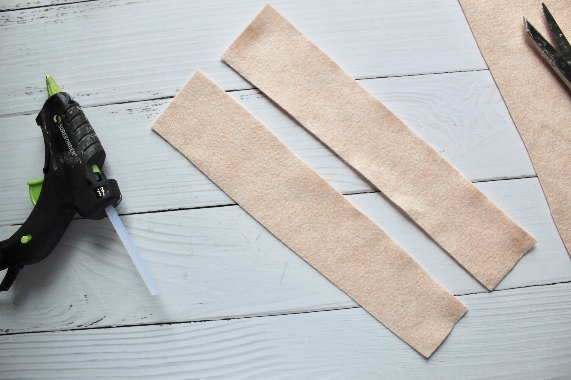 Cut a strip of felt, about twelve inches in length and two inches wide. You will then add a strip of glue and fold the felt in half.