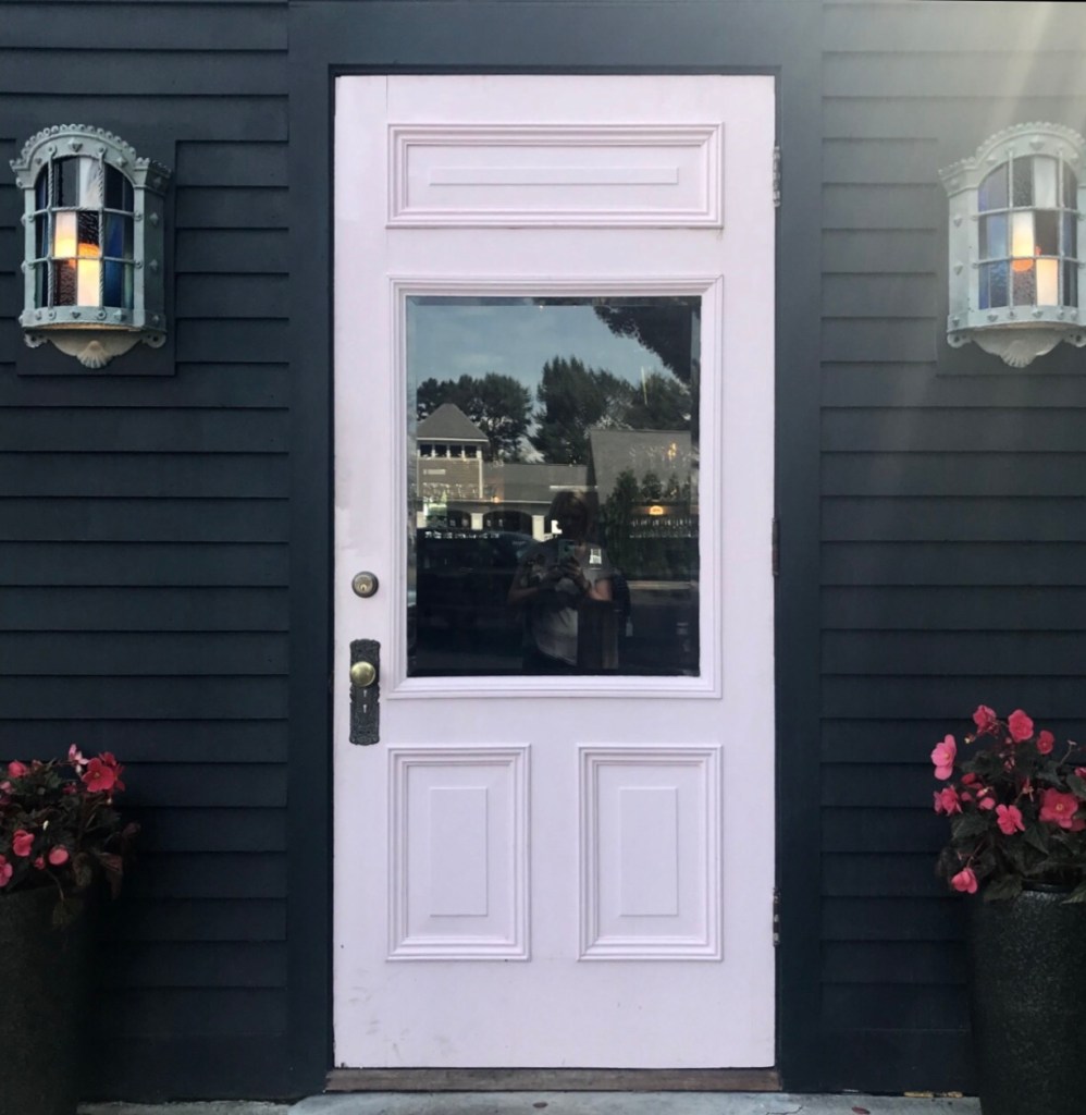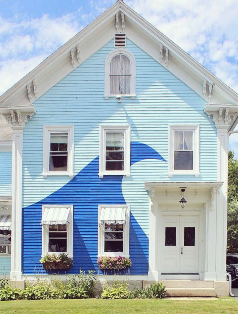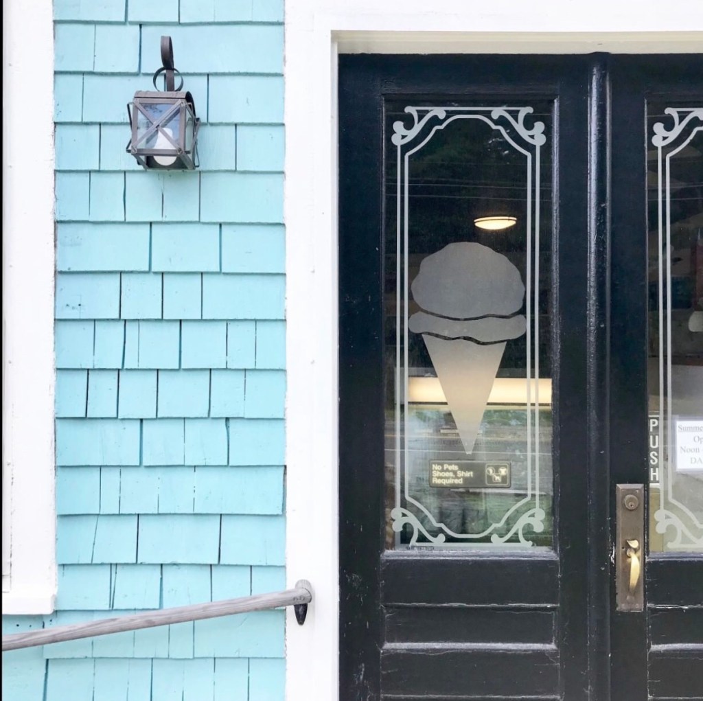 The cutest house with a wave.An adorable restaurant with a pale pink door and black siding. What’s happier than an ice cream cone door?
